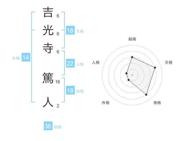吉光寺 篤人さんの天格は18画の4点!