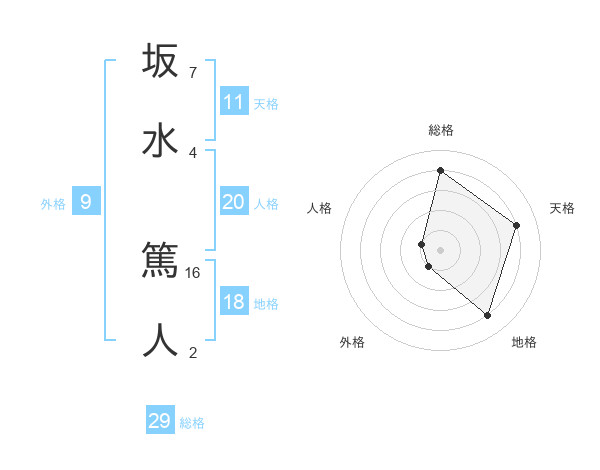 坂水 篤人さんの総格は29画の4点!