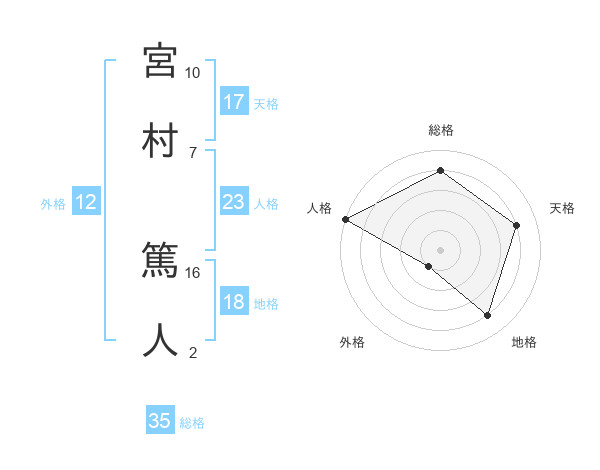 宮村 篤人さんの天格は17画の4点!