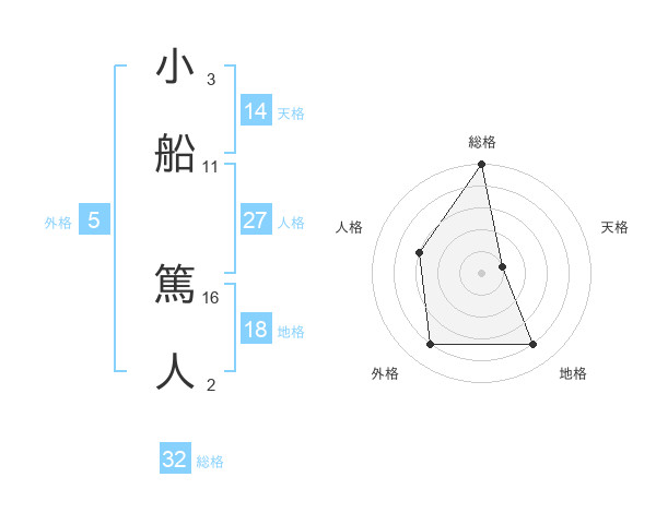 小船 篤人さんの総格は32画の5点!
