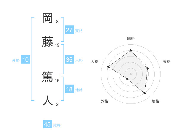 岡藤 篤人さんの総格は45画の4点!
