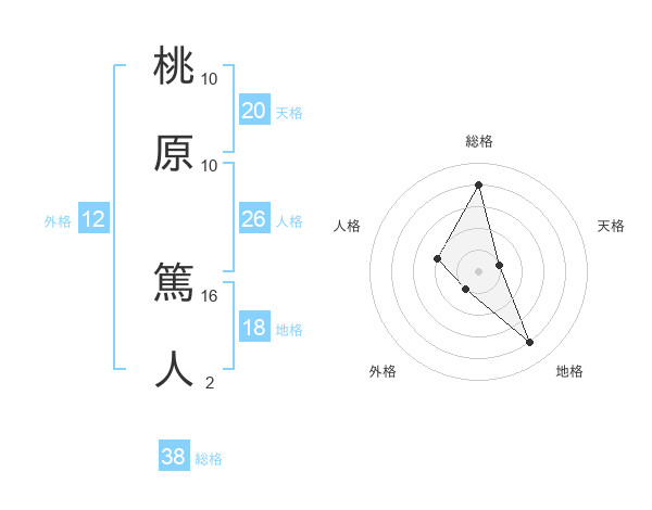 桃原 篤人さんの総格は38画の4点!