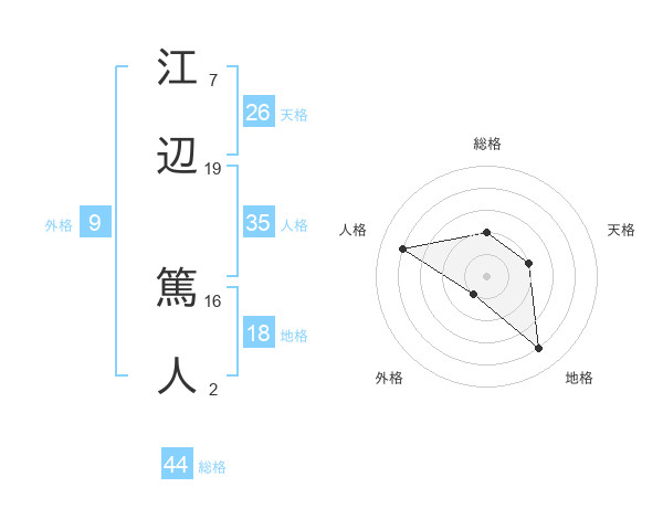 江辺 篤人さんを姓名の画数から五運を鑑定