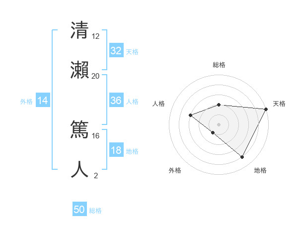 清瀨 篤人さんの総格は50画の2点!