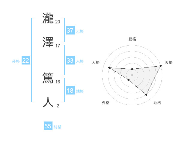 瀧澤 篤人さんの総格は55画の1点!
