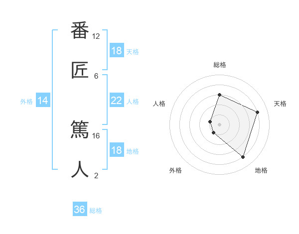 番匠 篤人さんを姓名の画数から五運を鑑定