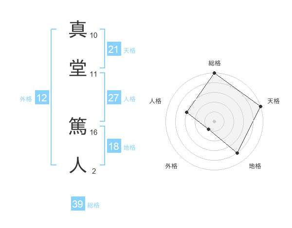 真堂 篤人さんの天格は21画の5点!