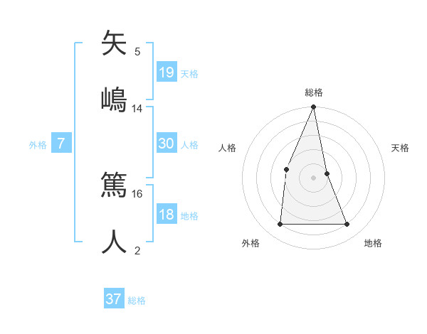 矢嶋 篤人さんの総格は37画の5点!