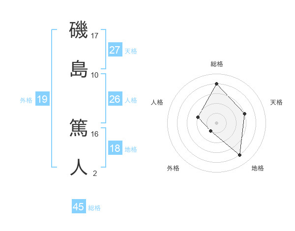 磯島 篤人さんの総格は45画の4点!