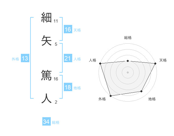 細矢 篤人さんの天格は16画の5点!