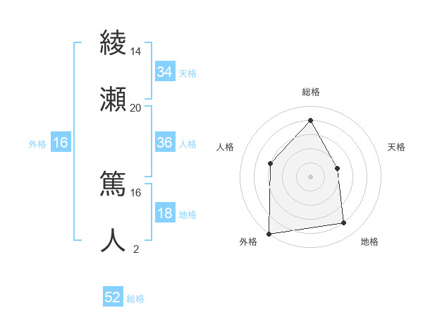 綾瀬 篤人さんの総格は52画の4点!