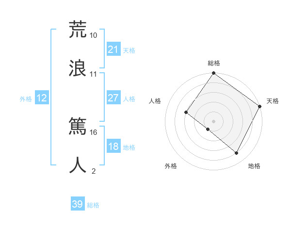荒浪 篤人さんの総格は39画の5点!