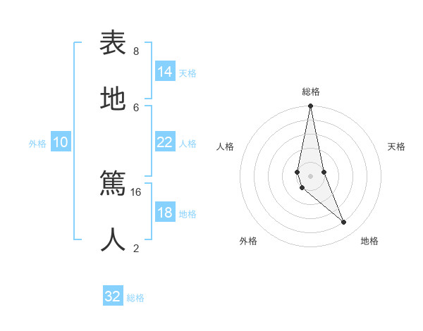 表地 篤人さんの人格は22画の1点!