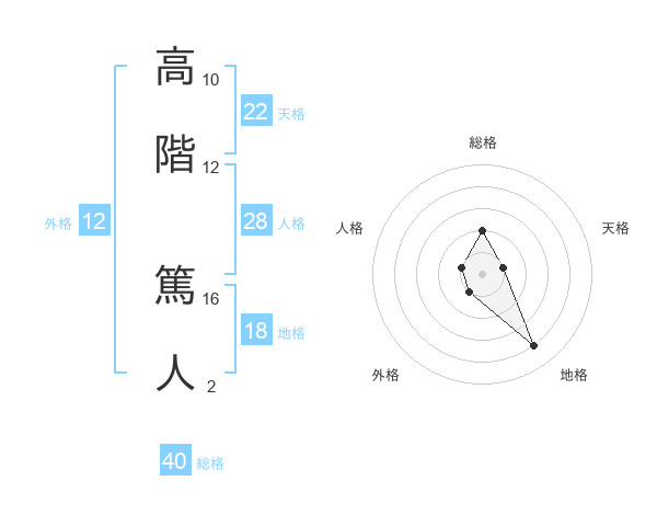 高階 篤人さんの天格は22画の1点!