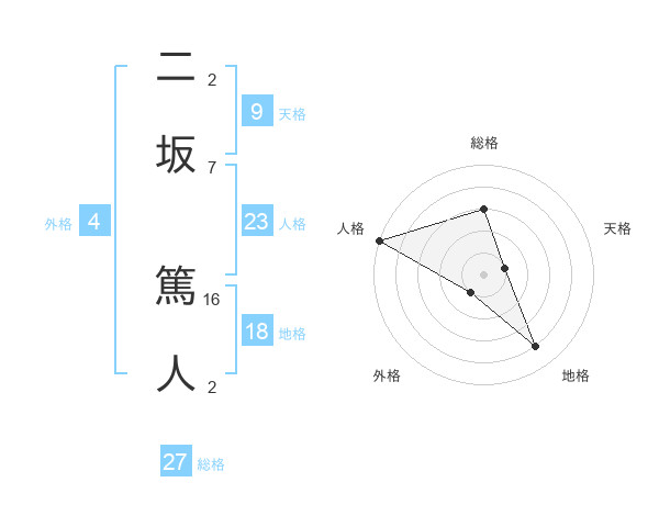 二坂 篤人さんの総格は27画の3点!