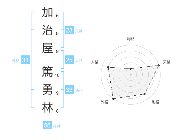 加治屋 篤勇林さんの総格は56画の1点