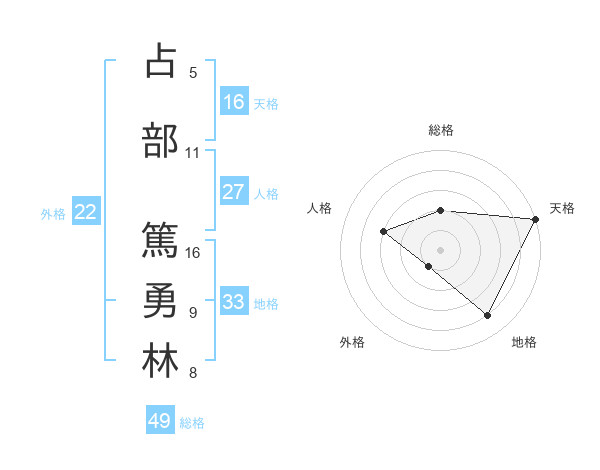 占部 篤勇林さんを姓名の画数から五運を鑑定