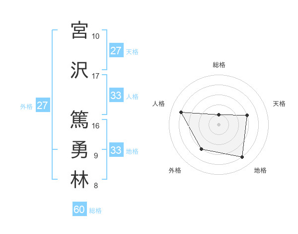 宮沢 篤勇林さんを姓名の画数から五運を鑑定