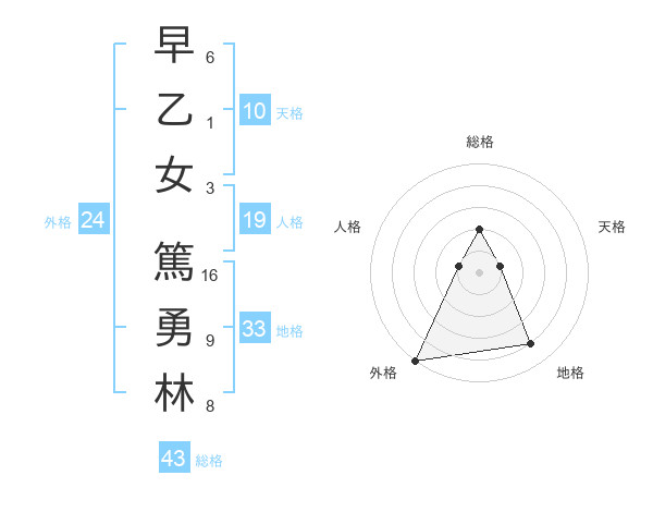 早乙女 篤勇林さんを姓名の画数から五運を鑑定