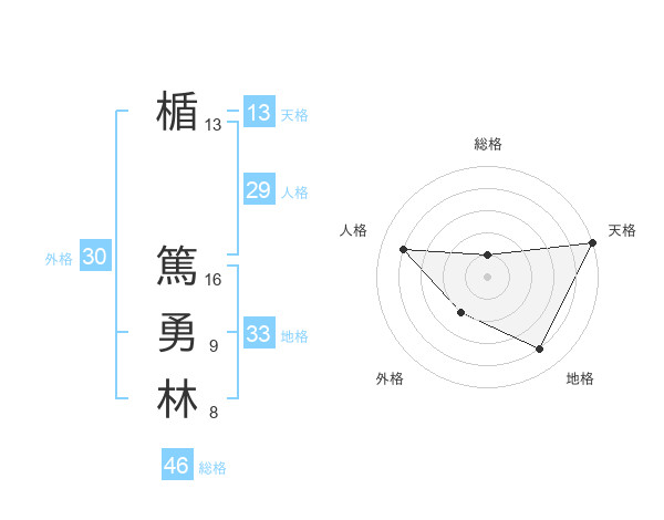楯 篤勇林さんの天格は13画の5点!