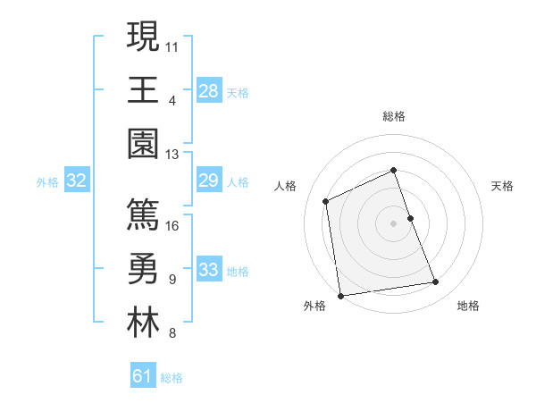現王園 篤勇林さんの総格は61画の3点!