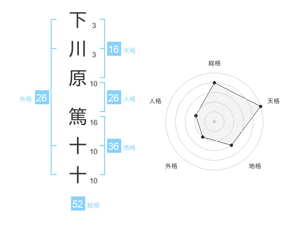 下川原 篤十十さんを姓名の画数から五運を鑑定