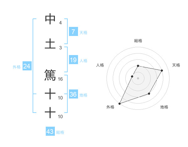 中土 篤十十さんの総格は43画の2点!