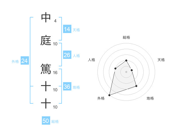 中庭 篤十十さんの総格は50画の2点!