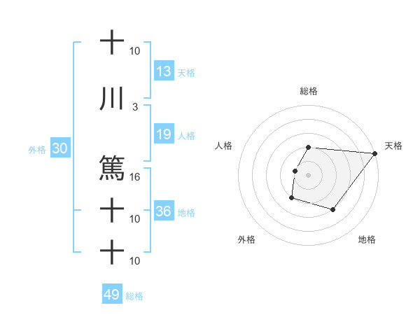 十川 篤十十さんの天格は13画の5点!