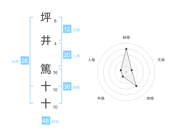 坪井 篤十十さんの総格は48画の4点!