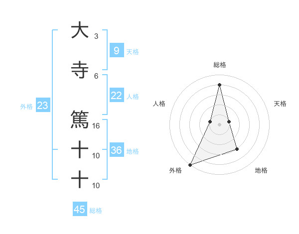 大寺 篤十十さんの総格は45画の4点!