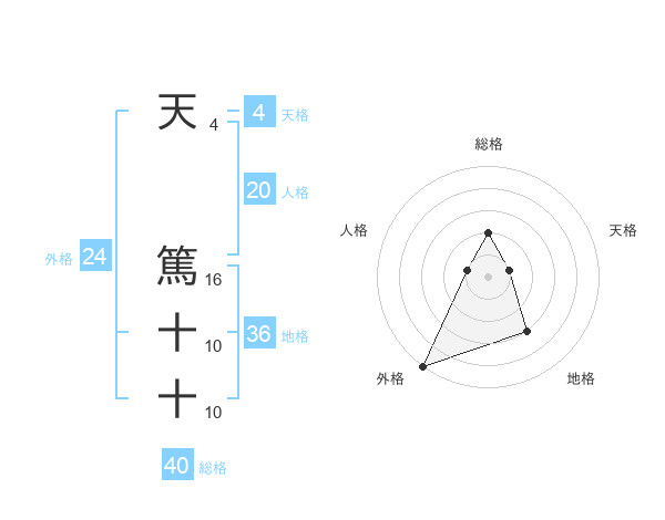 天 篤十十さんの総格は40画の2点!