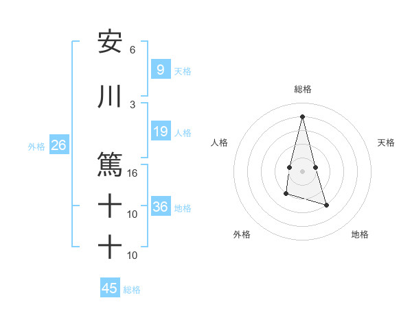 安川 篤十十さんの総格は45画の4点!