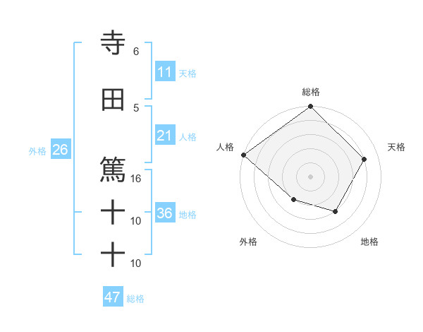 寺田 篤十十さんを姓名の画数から五運を鑑定