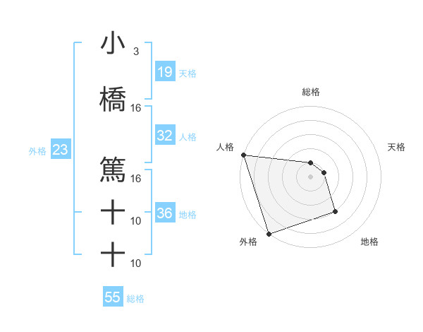 小橋 篤十十さんを姓名の画数から五運を鑑定