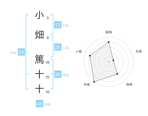 小畑 篤十十さんを姓名の画数から五運を鑑定