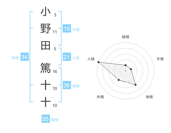 小野田 篤十十さんの総格は55画の1点!
