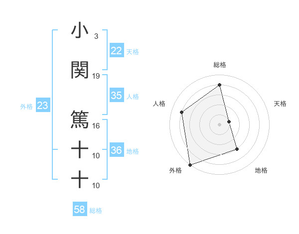 小関 篤十十さんの総格は58画の4点