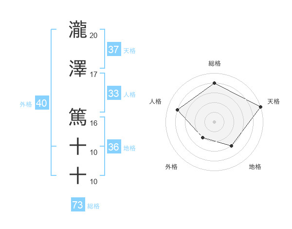 瀧澤 篤十十さんの総格は73画の4点!