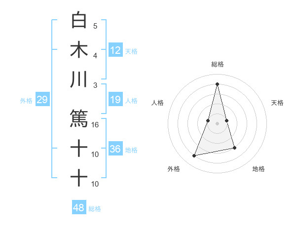 白木川 篤十十さんの総格は48画の4点!