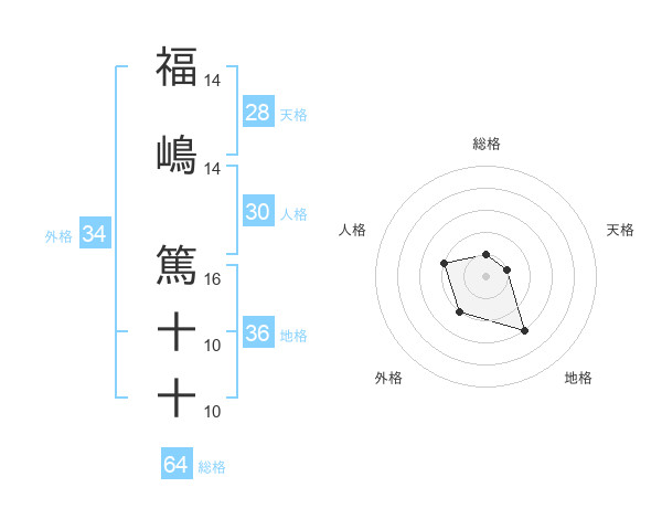 福嶋 篤十十さんの総格は64画の1点!