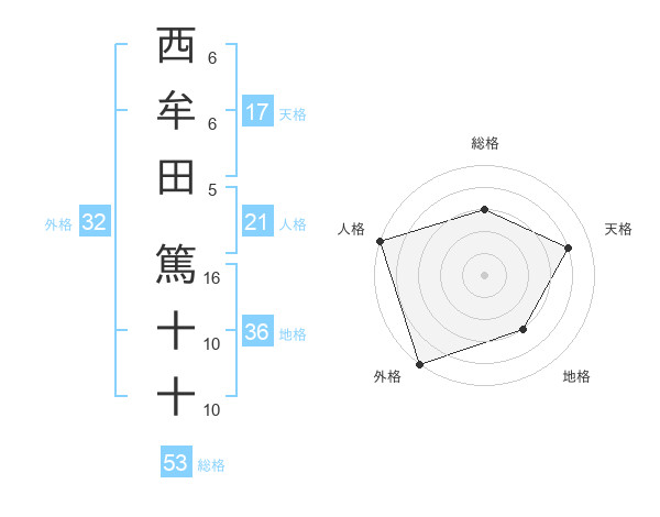 西牟田 篤十十さんを姓名の画数から五運を鑑定
