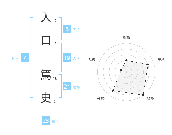 入口 篤史さんの総格は26画の2点!