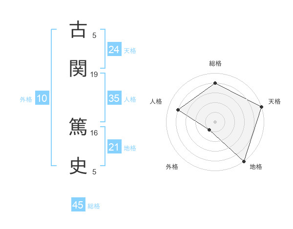 古関 篤史さんの天格は24画の5点!