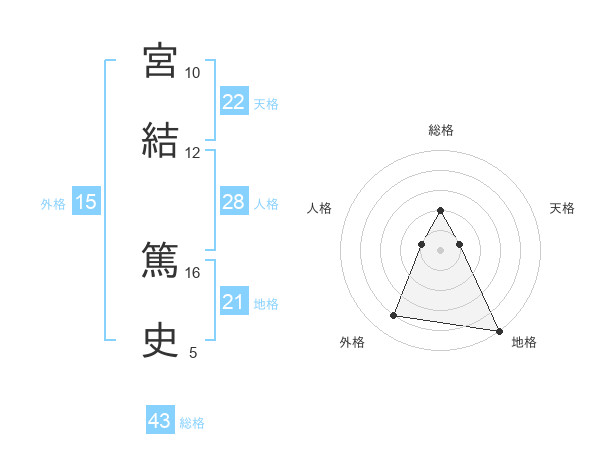 宮結 篤史さんの総格は43画の2点!