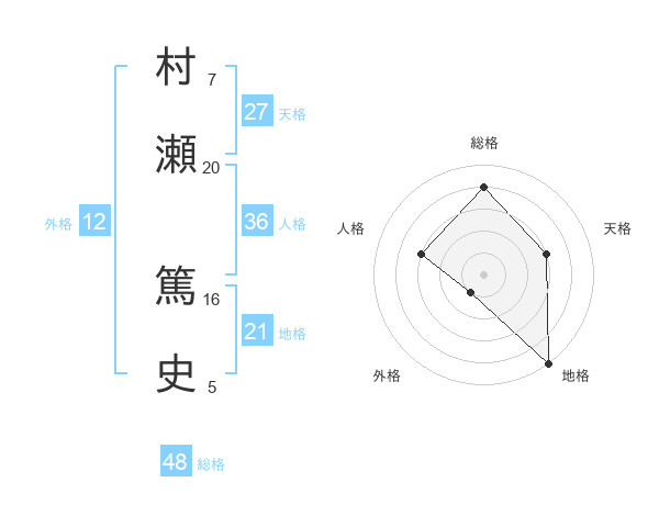 村瀬 篤史さんの総格は48画の4点!