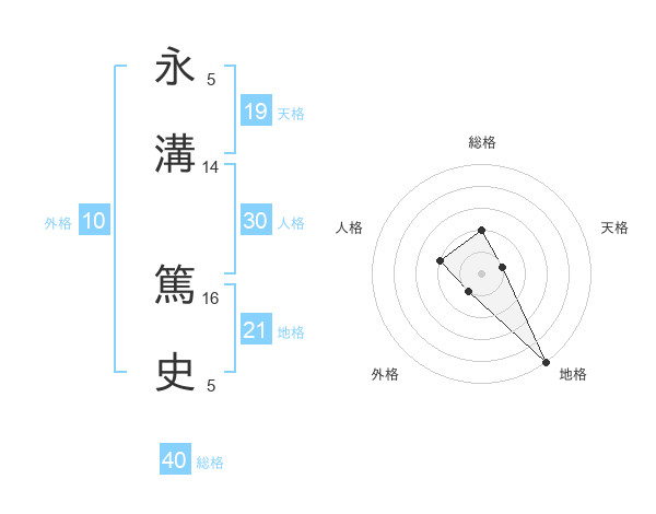 永溝 篤史さんの地格は21画の5点!