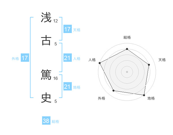 浅古 篤史さんの天格は17画の4点!
