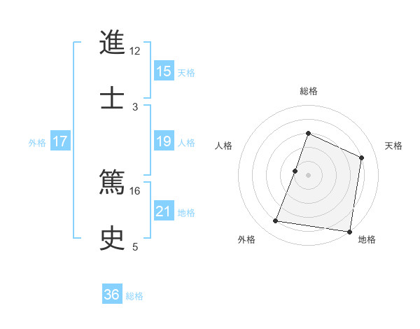 進士 篤史さんの地格は21画の5点!