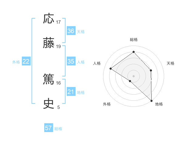 応藤 篤史さんの総格は57画の4点!